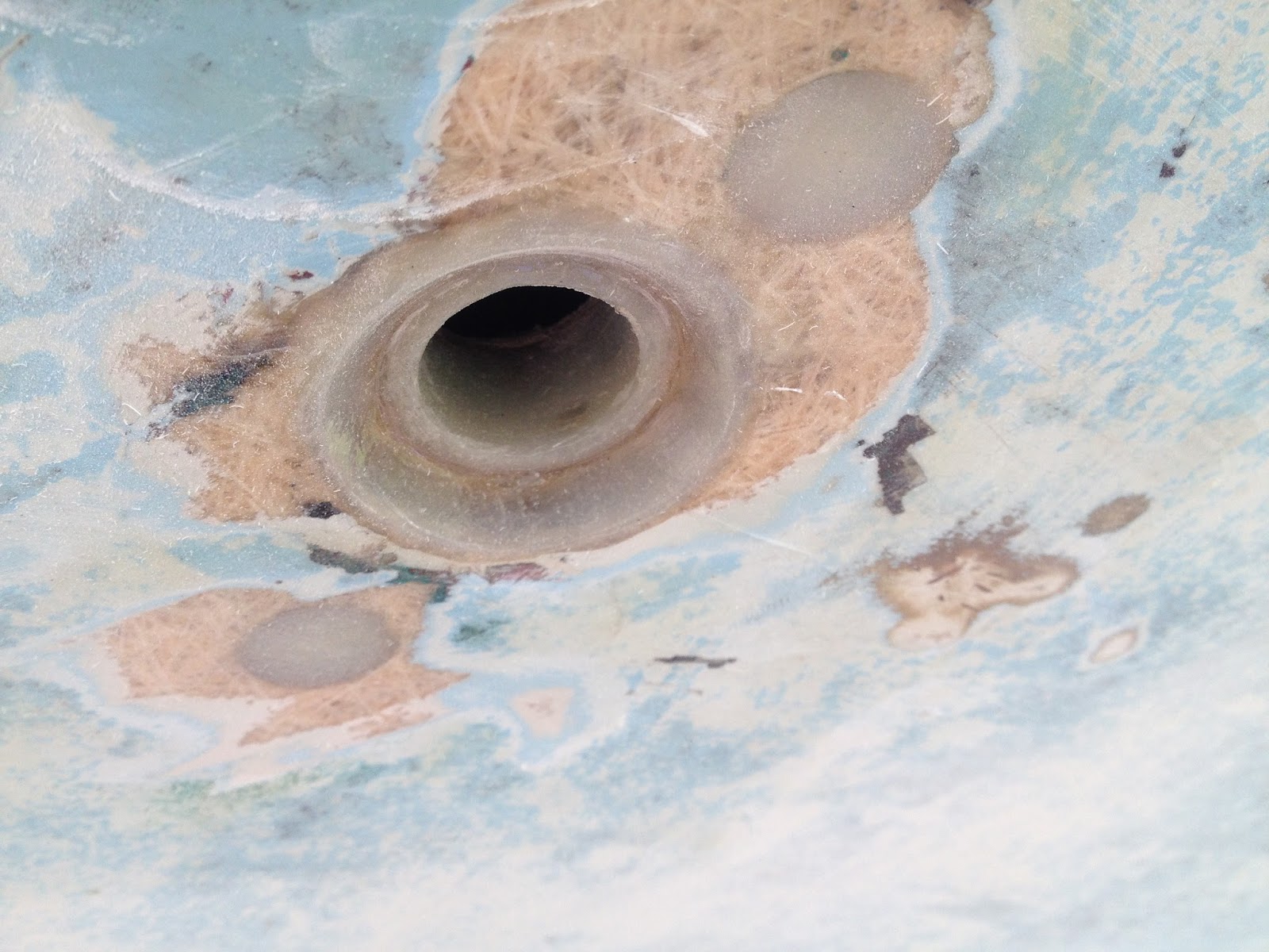 | 1/2" structural fiberglass (FRP) board was used to replace rotted plywood support. |